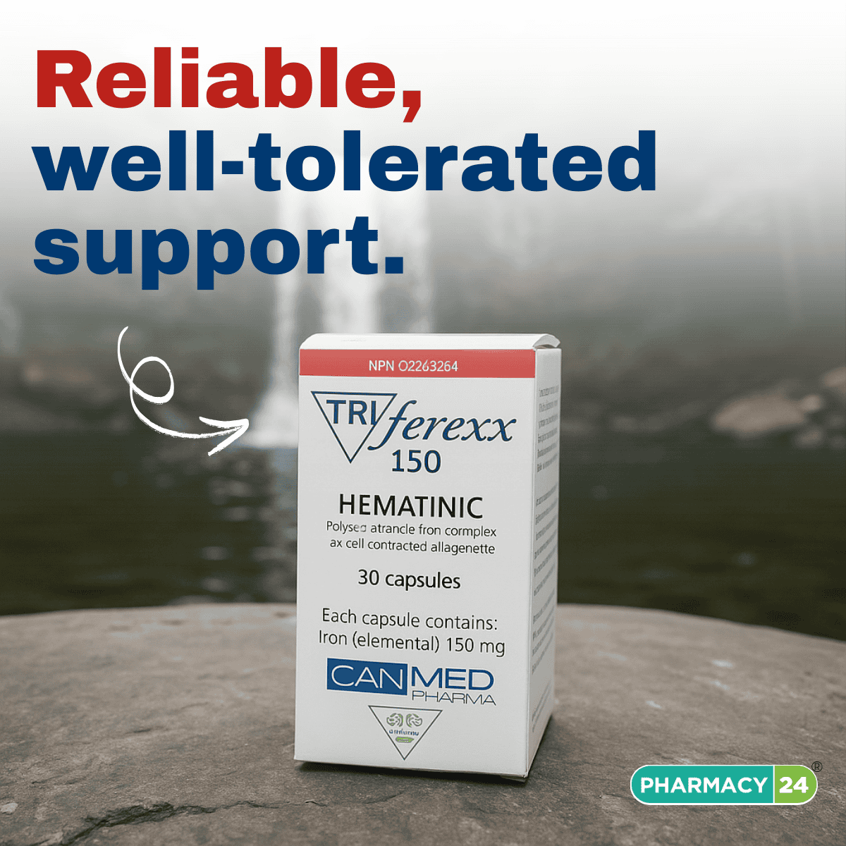 Trusted by Canadians for over 20 years, Triferexx is ideal for restoring healthy iron levels without unnecessary ingredients. Available in 30 or 100 capsule bottles.