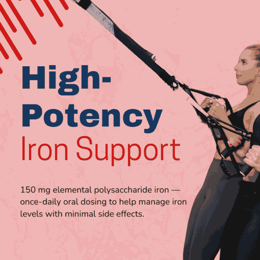 Triferexx delivers 150 mg elemental iron as a polysaccharide-iron complex (PIC), a form known for its gentle action and reduced stomach upset.