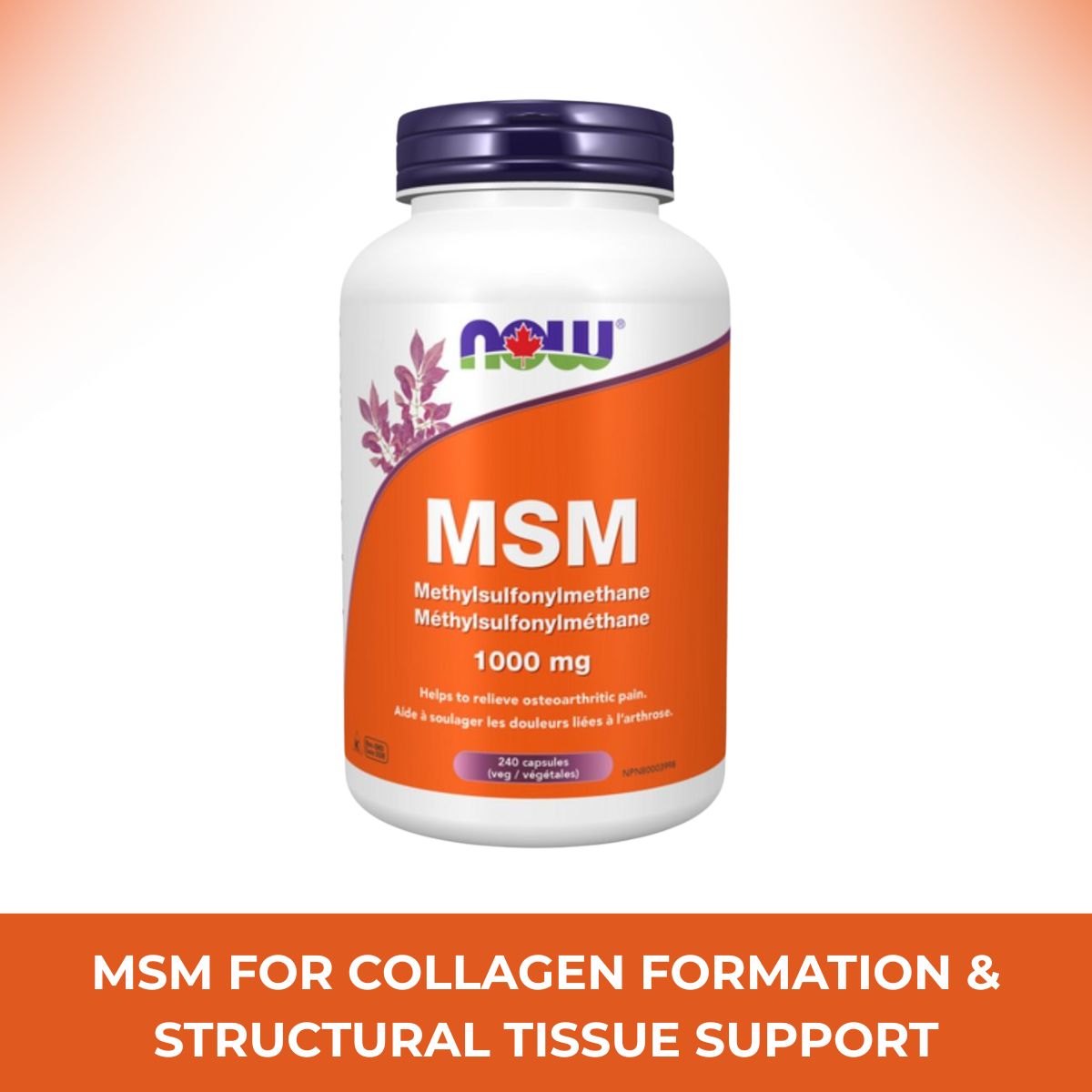 MSM (Methylsulphonylmethane) is a natural form of organic sulfur found in all living organisms. This natural compound, researched since 1979, provides the chemical links needed to form and maintain numerous different types of tissues found in the human body, including connective tissue such as articular cartilage. While MSM is a natural component of almost all fresh fruits, vegetables, seafood and meat, food-processing methods reduce sulfur levels, making supplementation more important than ever.