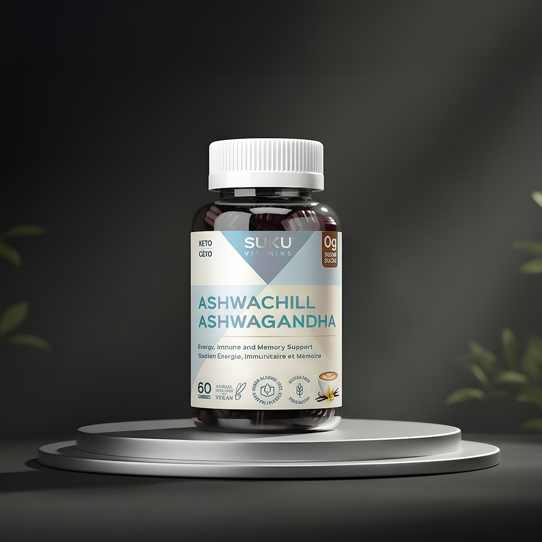 Meet Ashwachill: a thoughtfully balanced gummy featuring ashwagandha, reishi, and vitamin B12 (60 mcg). In Ayurveda, ashwagandha is traditionally used as a sleep aid, for memory enhancement, and as a rejuvenative tonic; this formula also assists energy metabolism and helps the immune system function properly. Vegan, sugar-free, non-GMO, pectin-based, and free from major allergens—with a comforting Vanilla Cappuccino taste. 60 gummies per bottle.